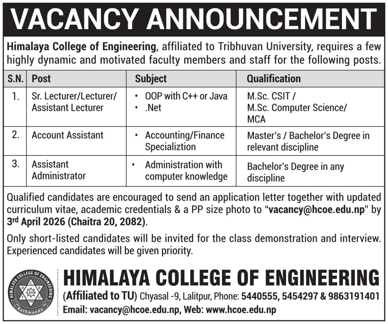 | Vacancy Announcement ! | 23 Sep 2025 |